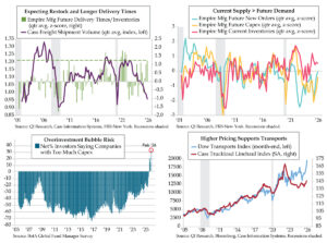 Ocean shipping trends help with tracking the mosaic of U.S. trade inflows. If only there was an ETF that tracks global shipping? Enter the SonicShares Global Shipping ETF, ticker BOAT. Its website explains: “The Index consists of global shipping companies engaged in the maritime transportation of goods and raw materials, including consumer and industrial products, vehicles, dry bulk, crude oil and liquefied natural gas. Maritime shipping is considered the lifeline of the U.S. and global economies, as around 90% of the world’s trade is carried by sea.” In the short history depicted, BOAT has steered a similar, earlier tack than ISM Imports. If the advance thus far this year (aqua line) is accurate, then the ISM Import climb is not yet complete and neither is the restock narrative.
