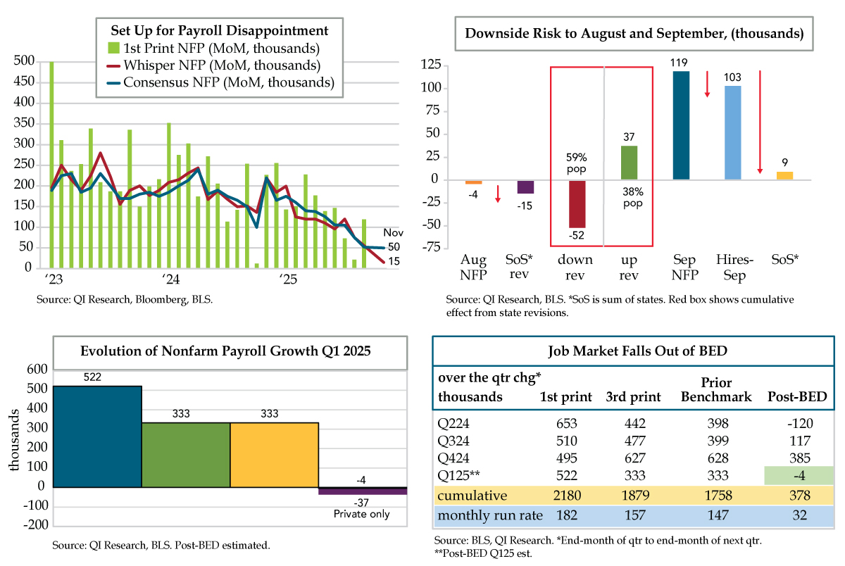 Long-end holds at elevated levels with de facto caps at 4.5% for the 10-year & 5% for the long bond with the term premium supported by fiscal malfeasance exacerbated by falling sovereign revenues and despite diminishing stimulus to the U.S. consumer.