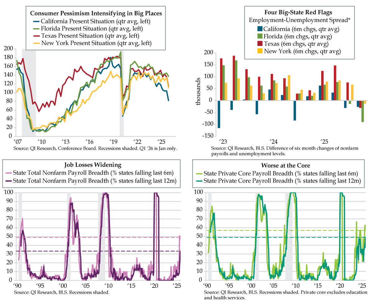 Long-end holds at elevated levels with de facto caps at 4.5% for the 10-year & 5% for the long bond with the term premium supported by fiscal malfeasance exacerbated by falling sovereign revenues and despite diminishing stimulus to the U.S. consumer.
