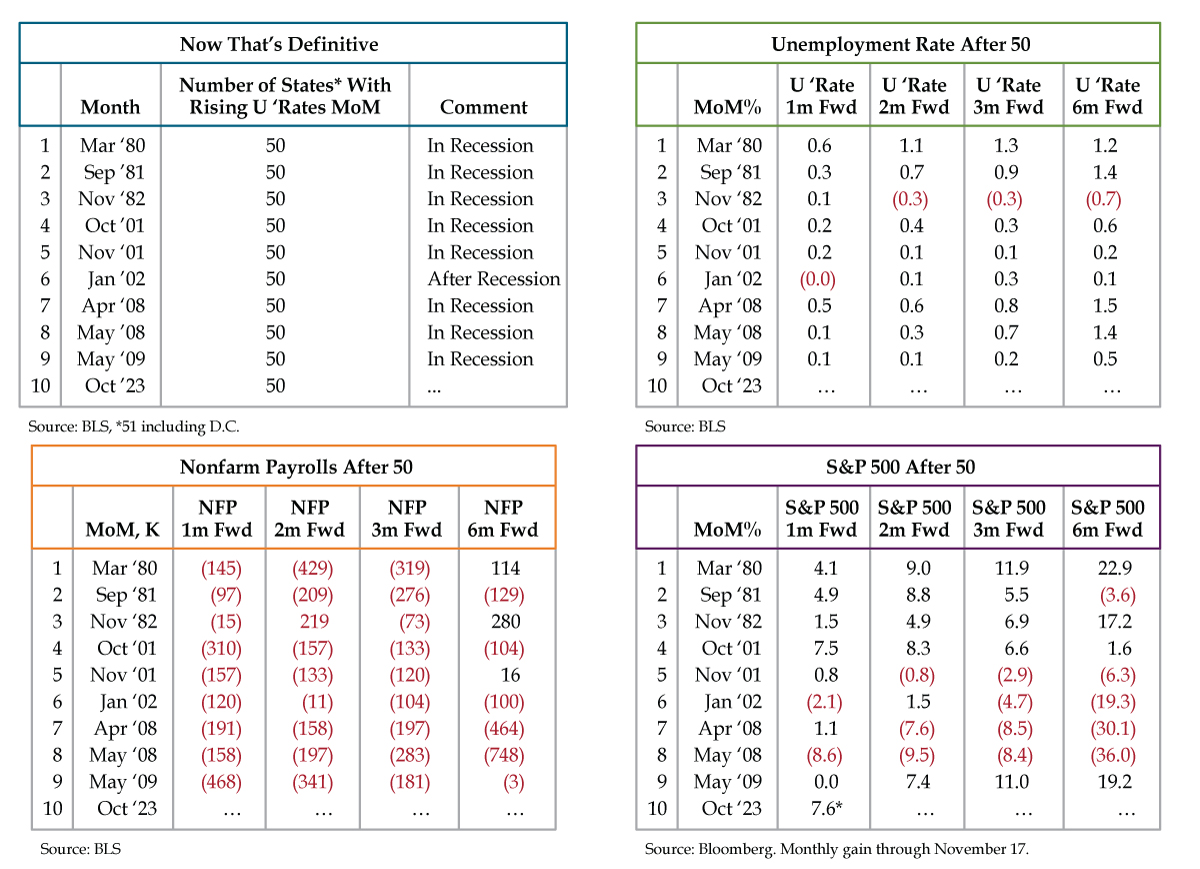 • Jobless claims deterioration makes a cautious Street rethink already-wider-spreads 2025 expectations, i.e., up default estimates as bankruptcy cycle speeds up and size