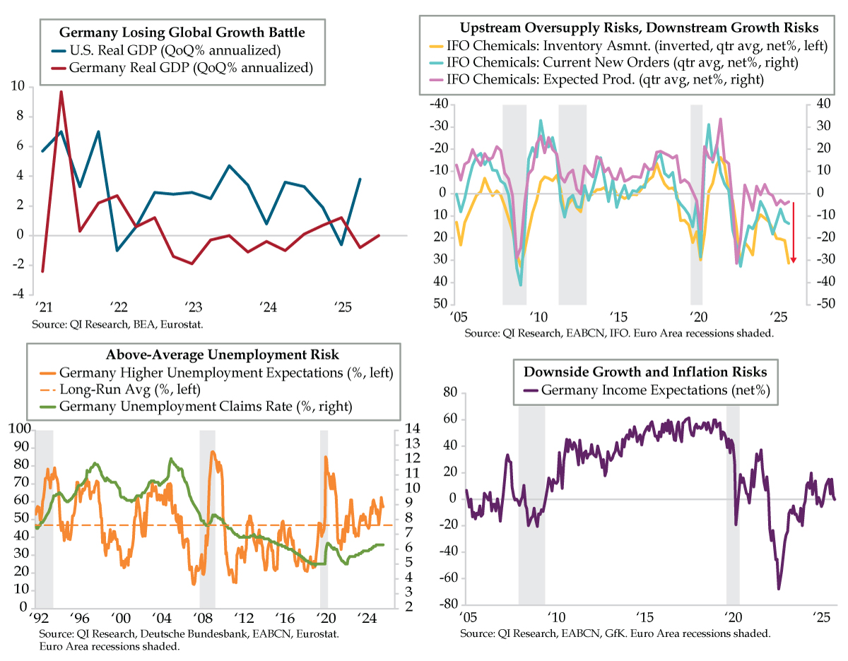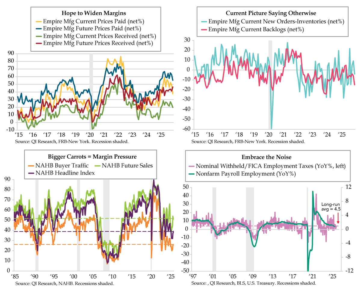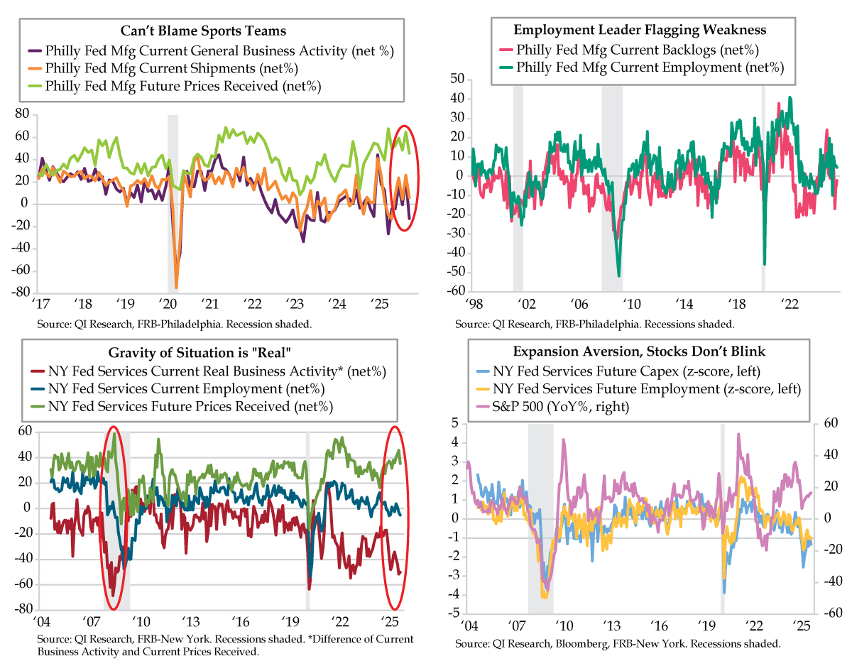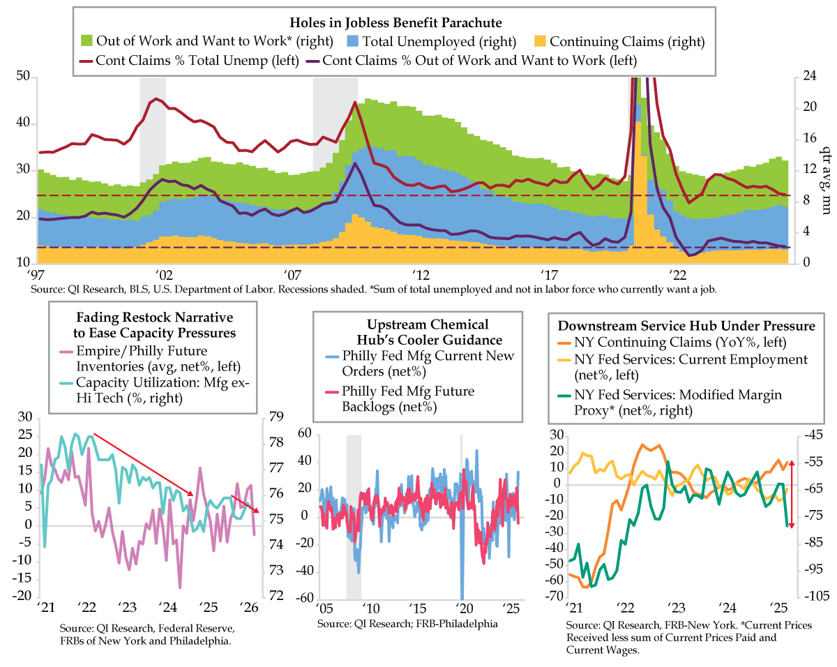 Long-end holds at elevated levels with de facto caps at 4.5% for the 10-year & 5% for the long bond with the term premium supported by fiscal malfeasance exacerbated by falling sovereign revenues and despite diminishing stimulus to the U.S. consumer.