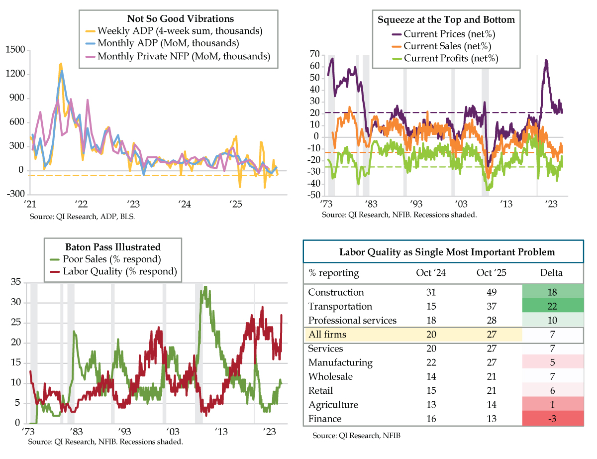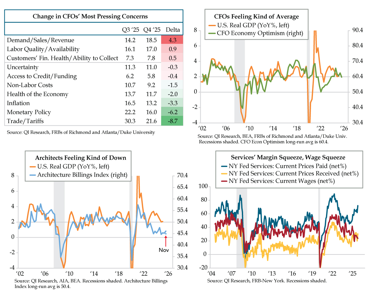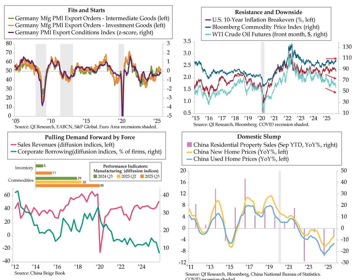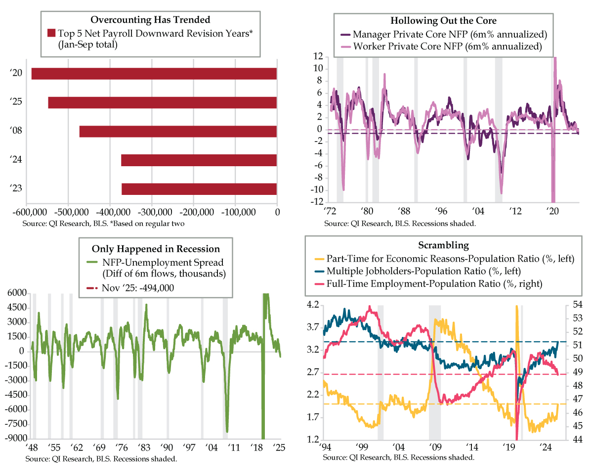 Long-end holds at elevated levels with de facto caps at 4.5% for the 10-year & 5% for the long bond with the term premium supported by fiscal malfeasance exacerbated by falling sovereign revenues and despite diminishing stimulus to the U.S. consumer.