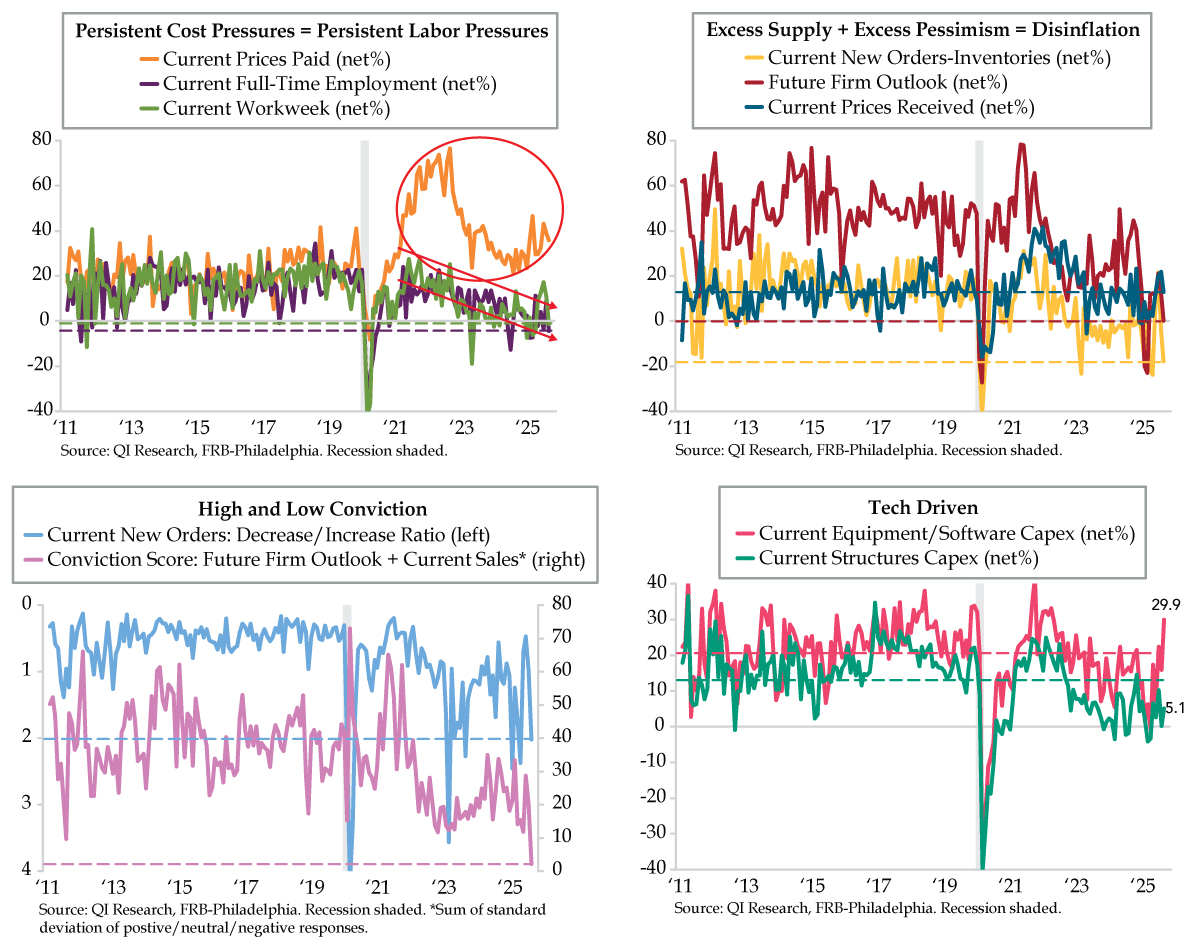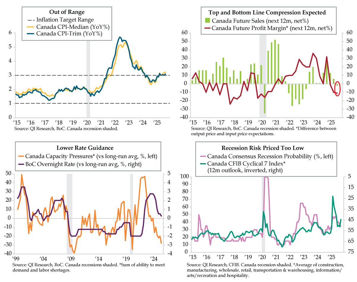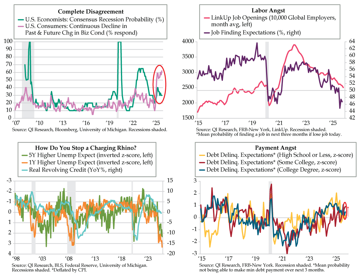 Recession probability to rise into 2025’s second half as private demand underperforms. The tariff shock should generate greater risks for a downshift in business investment and a more challenging environment for consumer cyclicals vis-à-vis consumer non-branded noncyclicals.