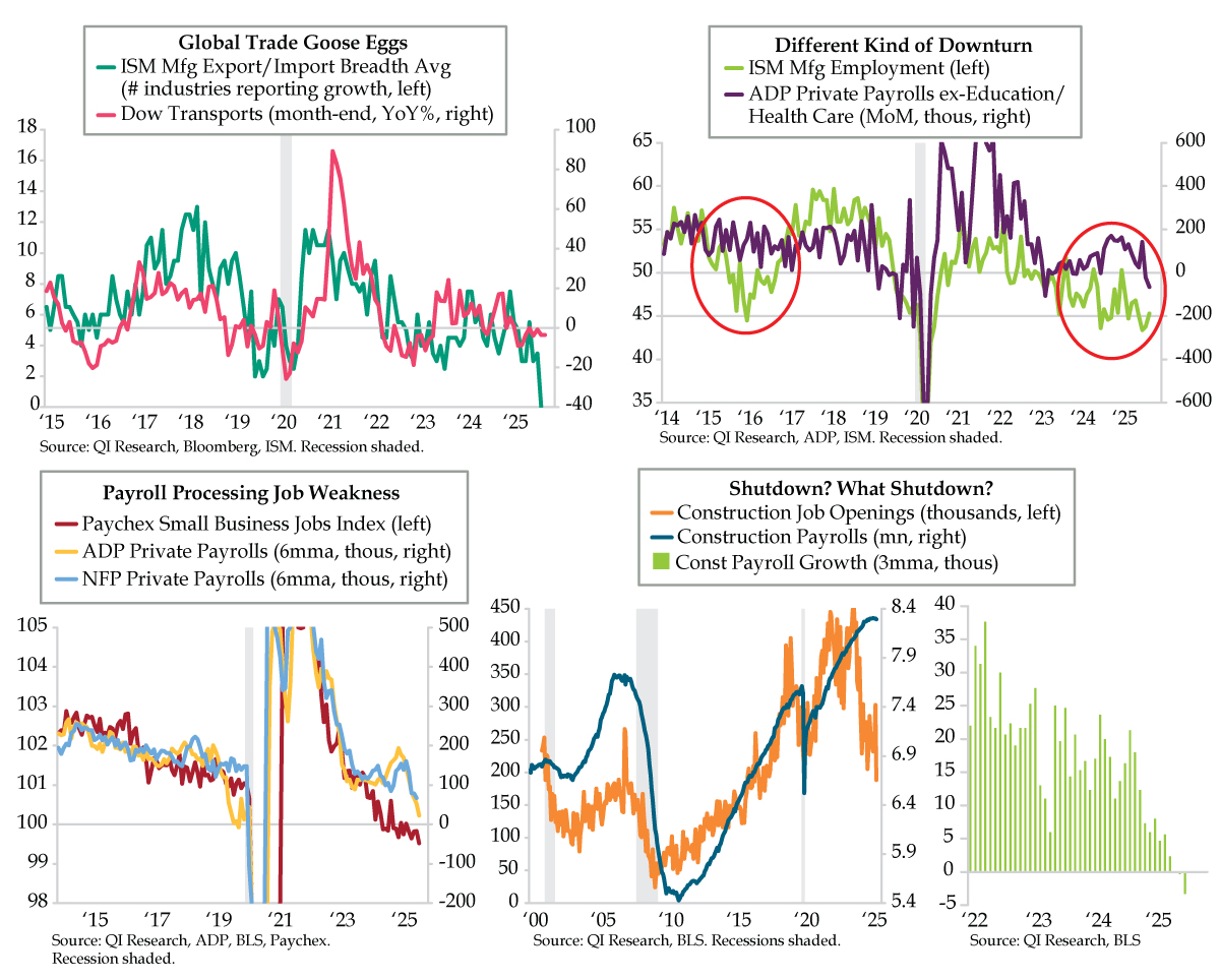 QUICK QUILL — The ISM and ADP reports together indicate significant global trade compression and emerging private sector job losses inclusive and exclusive of recession-proof industries. Paychex’s jobs index and the collapse in construction job openings…