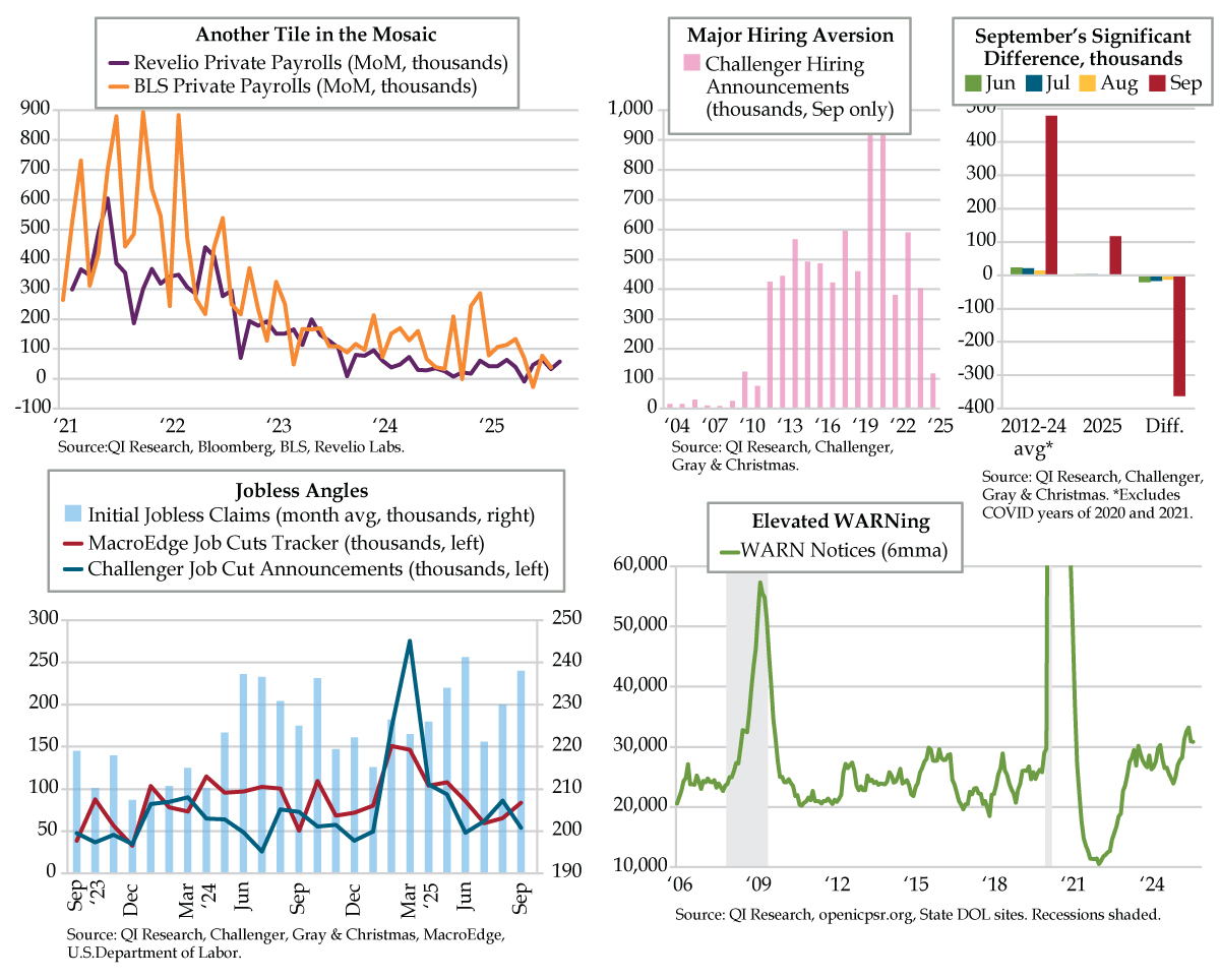 QUICK QUILL — New kid on the block, Revelio reinforces the downshift in private job growth below breakeven employment. Significantly weaker Challenger hiring announcements and MacroEdge’s job cuts, supported by a pick-up in WARN notices, add…