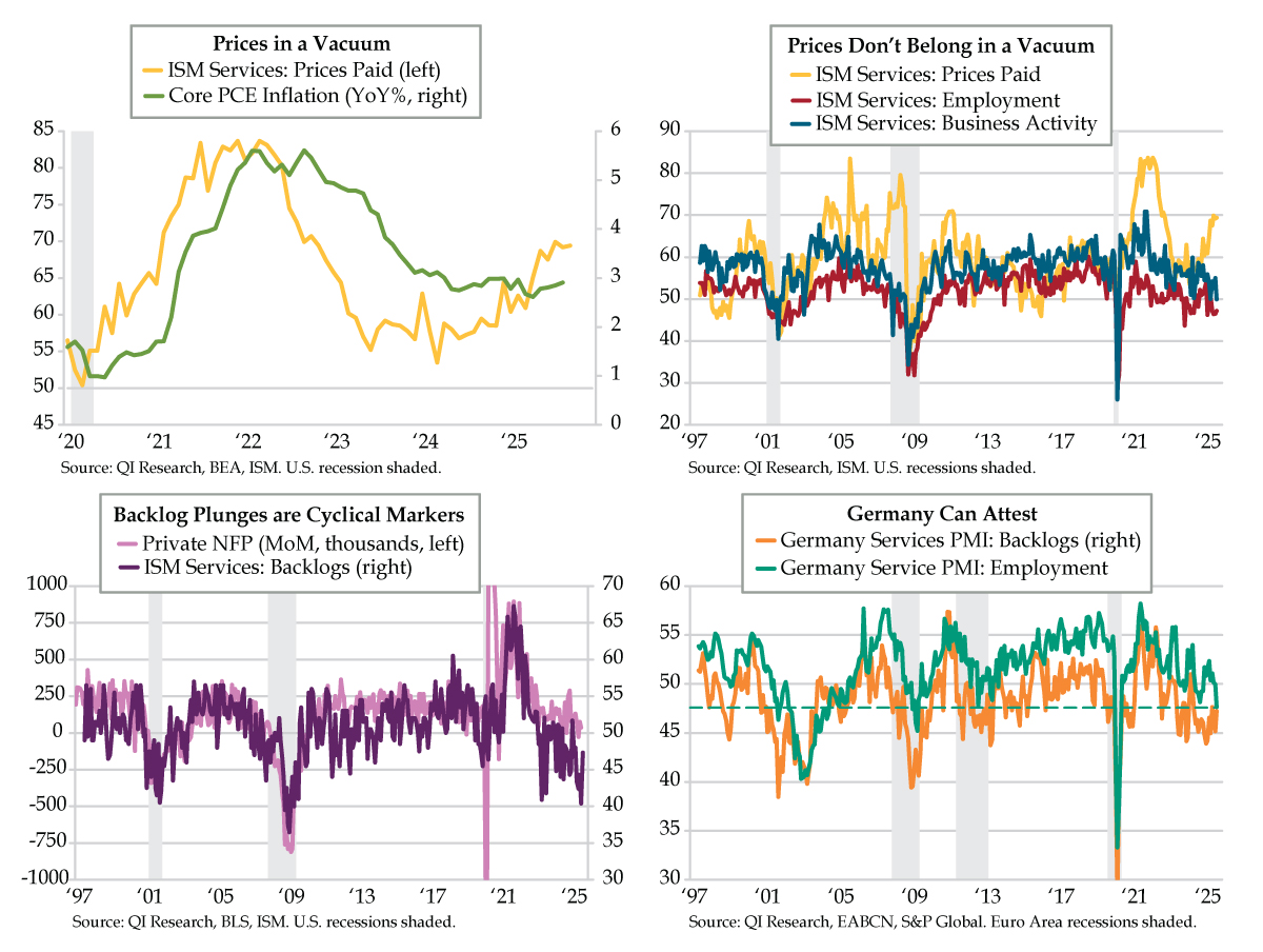 QUICK QUILL — Renewed weakening in ISM Services Business Activity and Employment indexes illustrates firms rushing to preserve margins to combat stubbornly high input costs. A retrenchment in the U.S.’s biggest trading partners lays bare the…